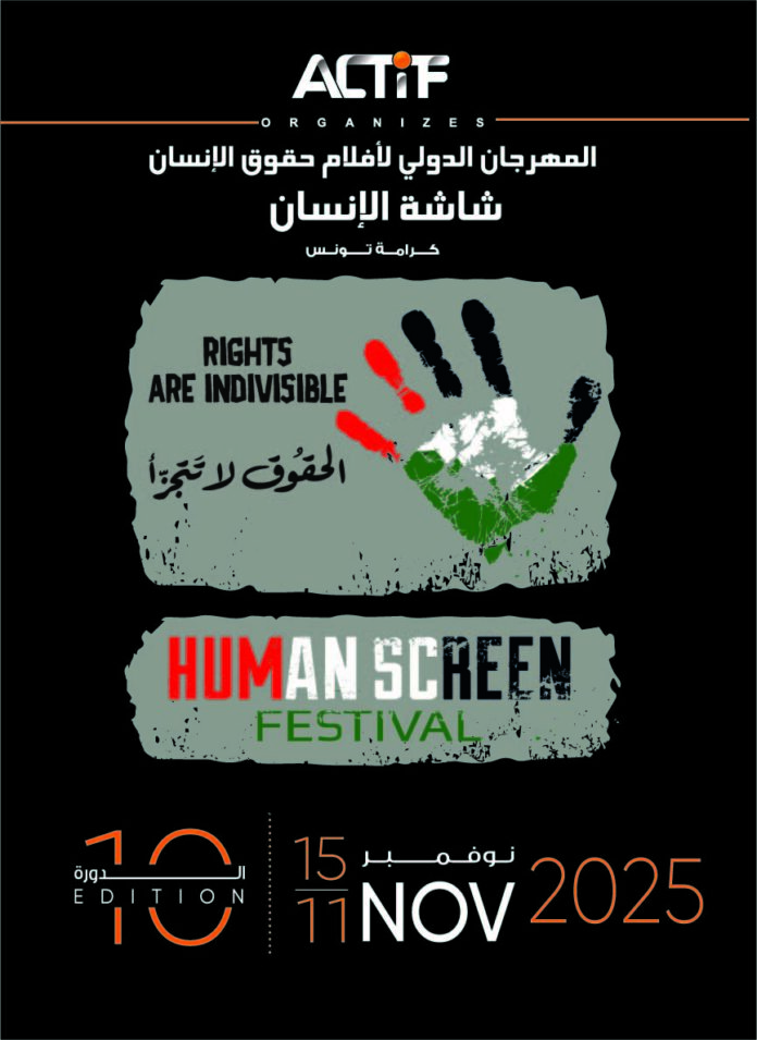 تنظم الجمعية الثقافيّة التونسية للإدماج والتكوين الدورة العاشرة للمهرجان الدولي لأفلام حقوق الانسان انطلاقا من يوم الثلاثاء 11 نوفمبر 2025 بمدينة الثقافة تونس تحت شعار “الحقوق لا تتجزأ”. وسيشهد حفل الافتتاح عرض فيلم “ضع روحك على يدك وامشِي” إخراج سيدة فارسي وتصوير المصورة الصحفية الشهيدة فاطمة حسونة.