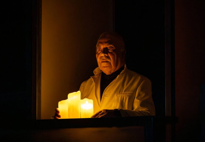 قبل العرض من ثلاثة فصول يقابلنا على الركح موسيقى للأوبرا الإيطالية «لاترافياتا» (المرأة الساقطة) مصحوبا بعرض من «الكوميديا دي لاراتي» لعرائس من البالون ترقص باستهتار كما لو أننا في استقبال كوميديا. وتهبط على الستار كلمات قصيدة تراجيدية عن الراحلين الذين تركونا للمسرح كعزاء وحيد في عالم متشظٍّ ومضطرب ليس أمامه سوى الهروب للمسرح لبقاء إنسانيته.